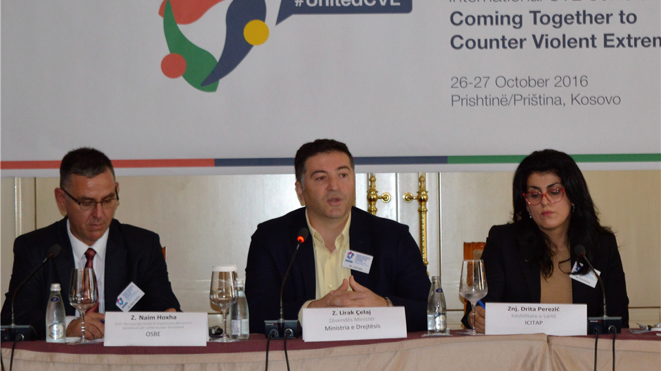 Sot, Zëvendësministri i Ministrisë së Drejtësisë, z. Lirak Çelaj ka marr pjesë në Konferencën e parë ndërkombëtare mbi parandalimin e ekstremizmit të dhunshëm e organizuar nga Ministria e Punëve të Brendshme dhe mbështetur nga Organizata për Siguri dhe Bashkëpunim në Evropë – OSBE.