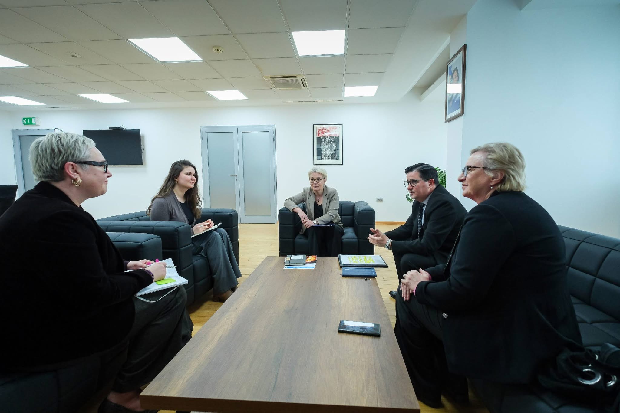 Në fokus të bisedës gjatë këtij takimi ishte avancimi i reformës në drejtësi, forcimi i mekanizmave kundër korrupsionit, garantimi i qasjes së barabartë në drejtësi për çdo qytetar, procesi i vetingut në sistemin e drejtësisë, ligji për Byronë, konsolidimi i mekanizmave të llogaridhënies, si dhe adresimi efektiv i dhunës në familje.
