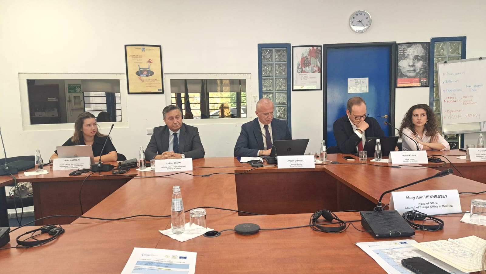 Në këtë takim, Ministrinë e Drejtësisë e përfaqësoi Zëvendësministri i Drejtësisë në detyrë, Vigan Qorrolli, shefi i Kabinetit dhe Këshilltari i Lartë, Genc Nimoni, drejtori i Departamentit Ligjor, Lulzim Beqiri, eksperti i jashtëm, Rinor Hoxha dhe dy zyrtaret e larta të Ministrisë, Lirikë Kamberi dhe Venera Maksuti ndërsa nga përfaqësuesit e Komisionit të Venecias nga Sekretariati ishin, Taras Pashuk, Jorgen Steen Sorensen – anëtar nga Danimarka, Hanna Suchocka – eksperte dhe Presidente Nderi, si dhe Janneke Gerards – anëtare nga Holanda.